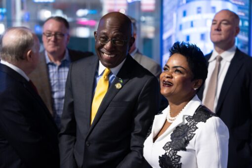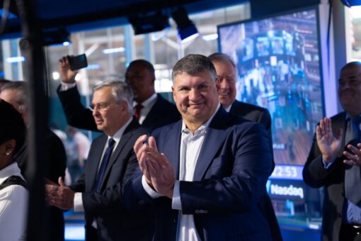 The event was broadcast live across major business news networks, including CNBC, Fox Business News and Bloomberg TV, and simultaneously displayed on the Nasdaq Tower in Times Square.
